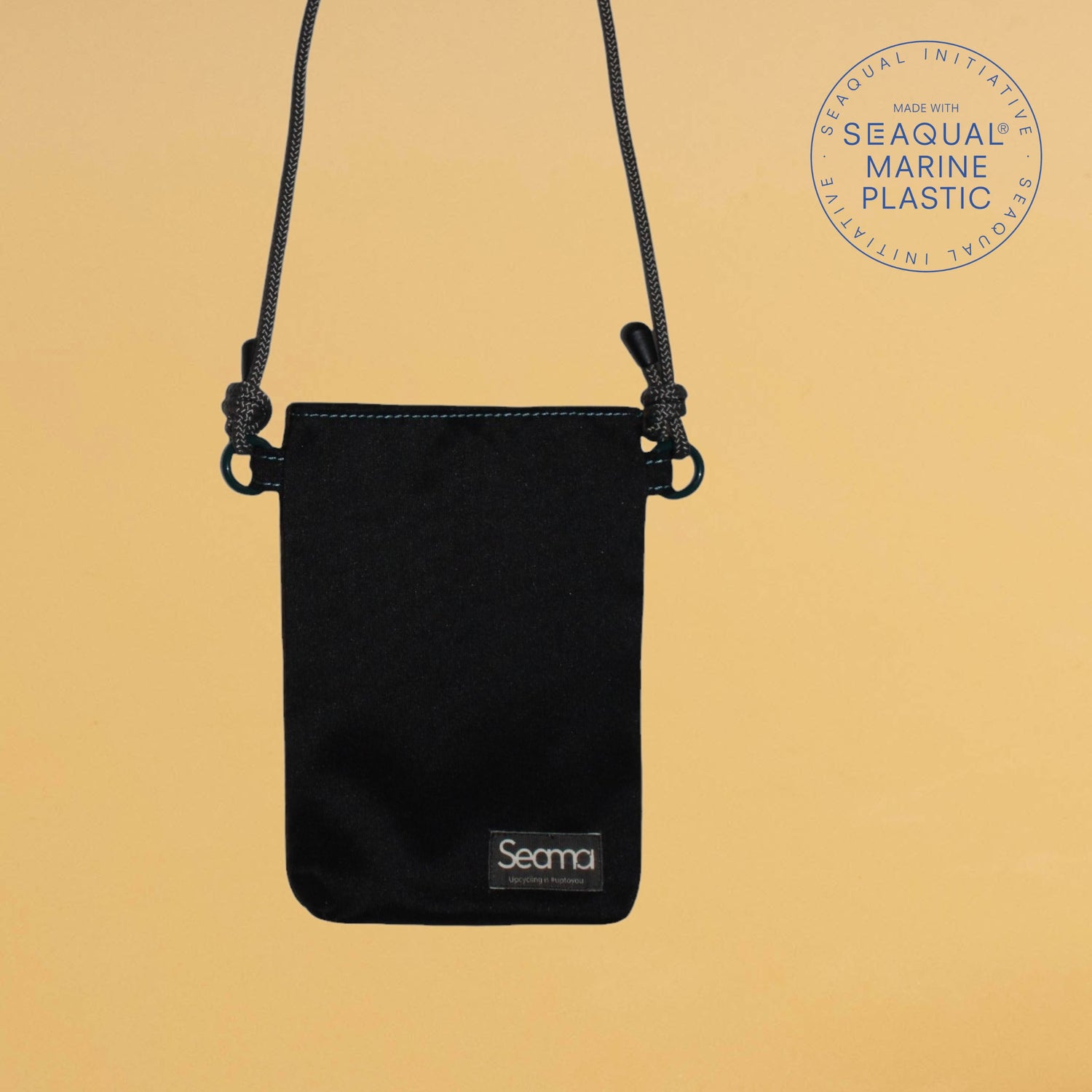 Seaqual cell phone holder is made from 100% certified recycled polyester by SEAQUAL® MARINE PLASTIC. This fabric contains approximately 10% marine plastic waste and 90% post-consumer PET from land sources.
