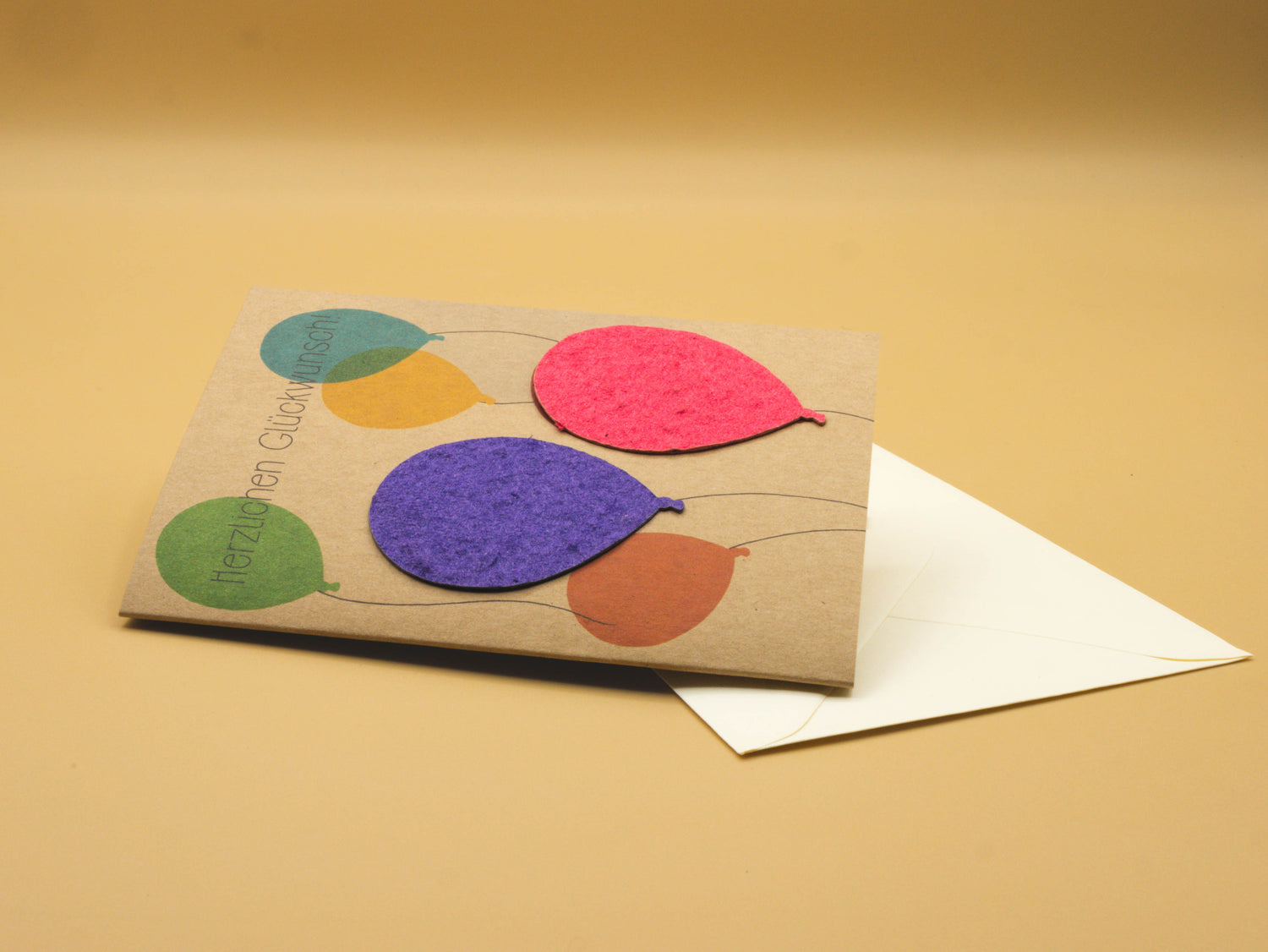 Per piantare i semi, staccate i palloncini dal biglietto, copriteli con un po' di terra e teneteli al caldo e all'umido. Dopo qualche giorno, vedrete i semi germogliare. Il sole aiuterà a far fiorire i fiori.