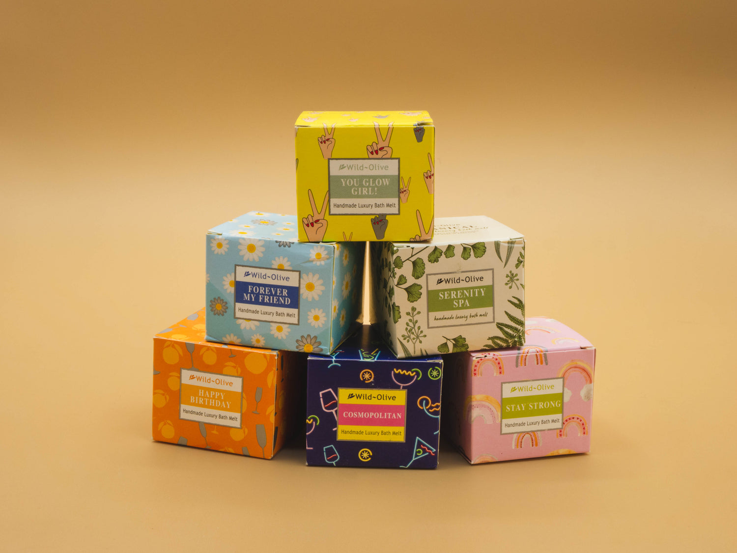 Packed in colorful Boxes with different themes, they are the ultimate moisturizing Bath Time Treat!