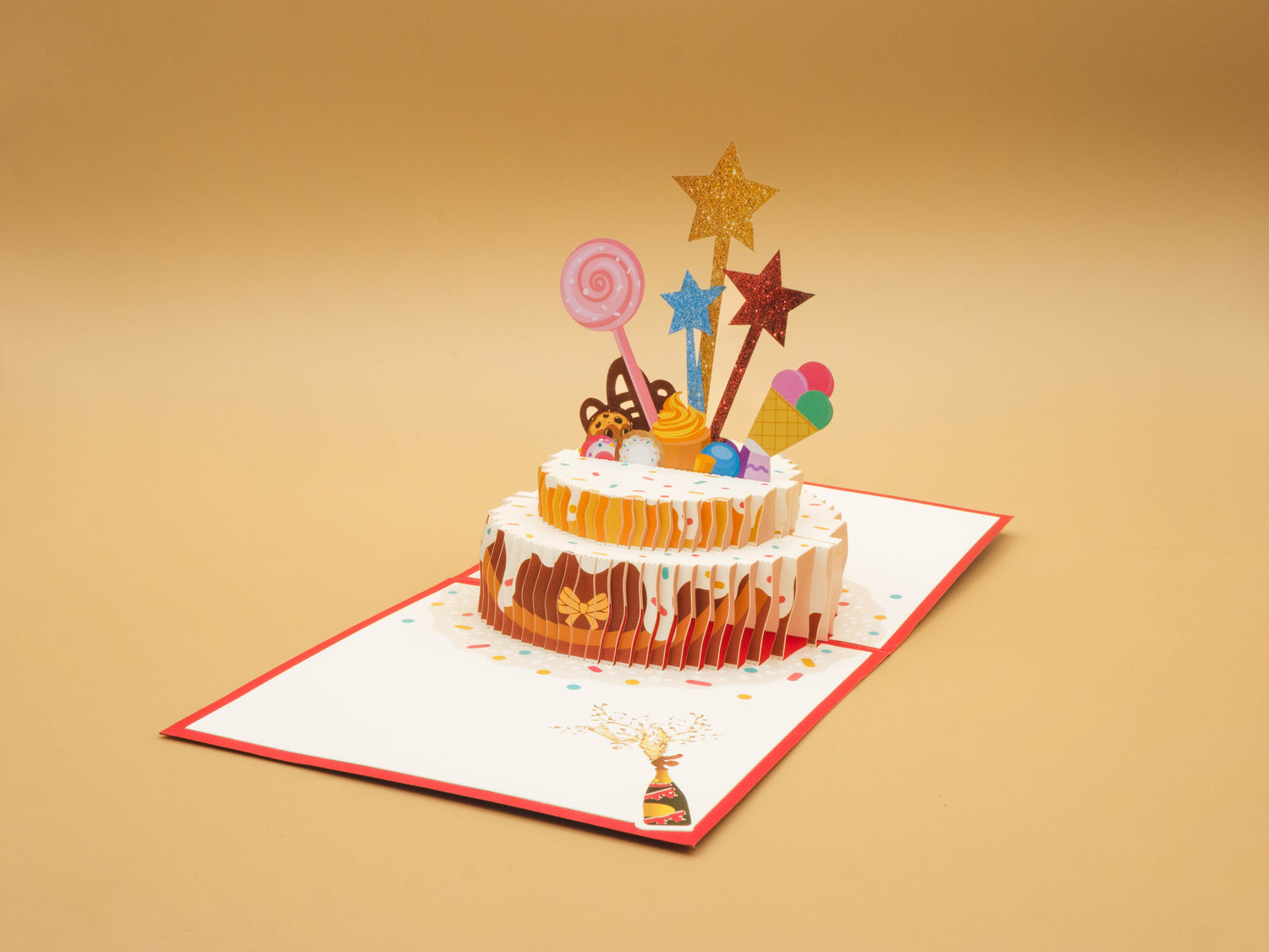 3D Pop-Up Card - Happy Birthday Cake Card (red)