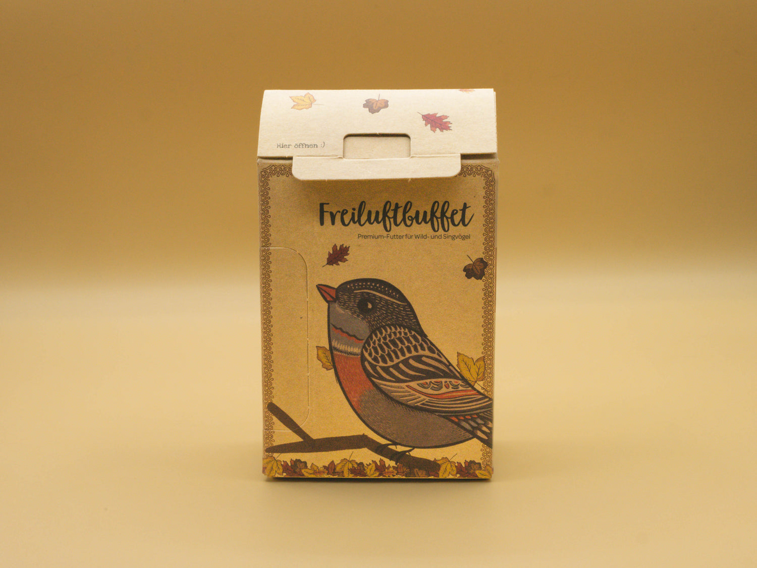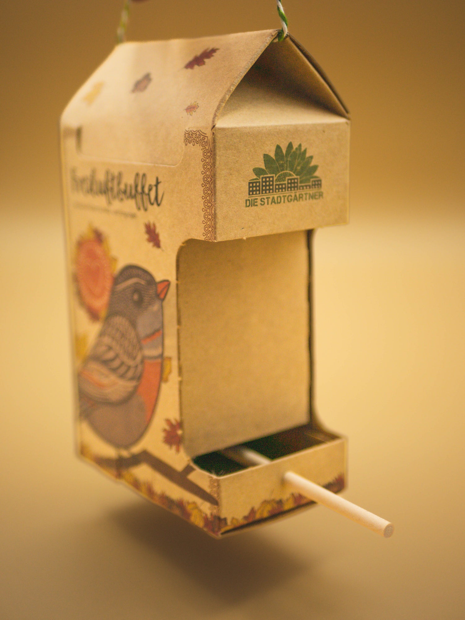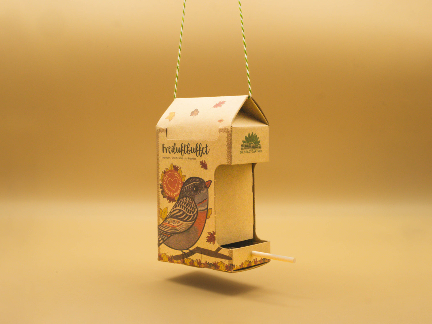 It is filled with 200 g of high-quality delicacies, and it is made of natural cardboard and a perch.